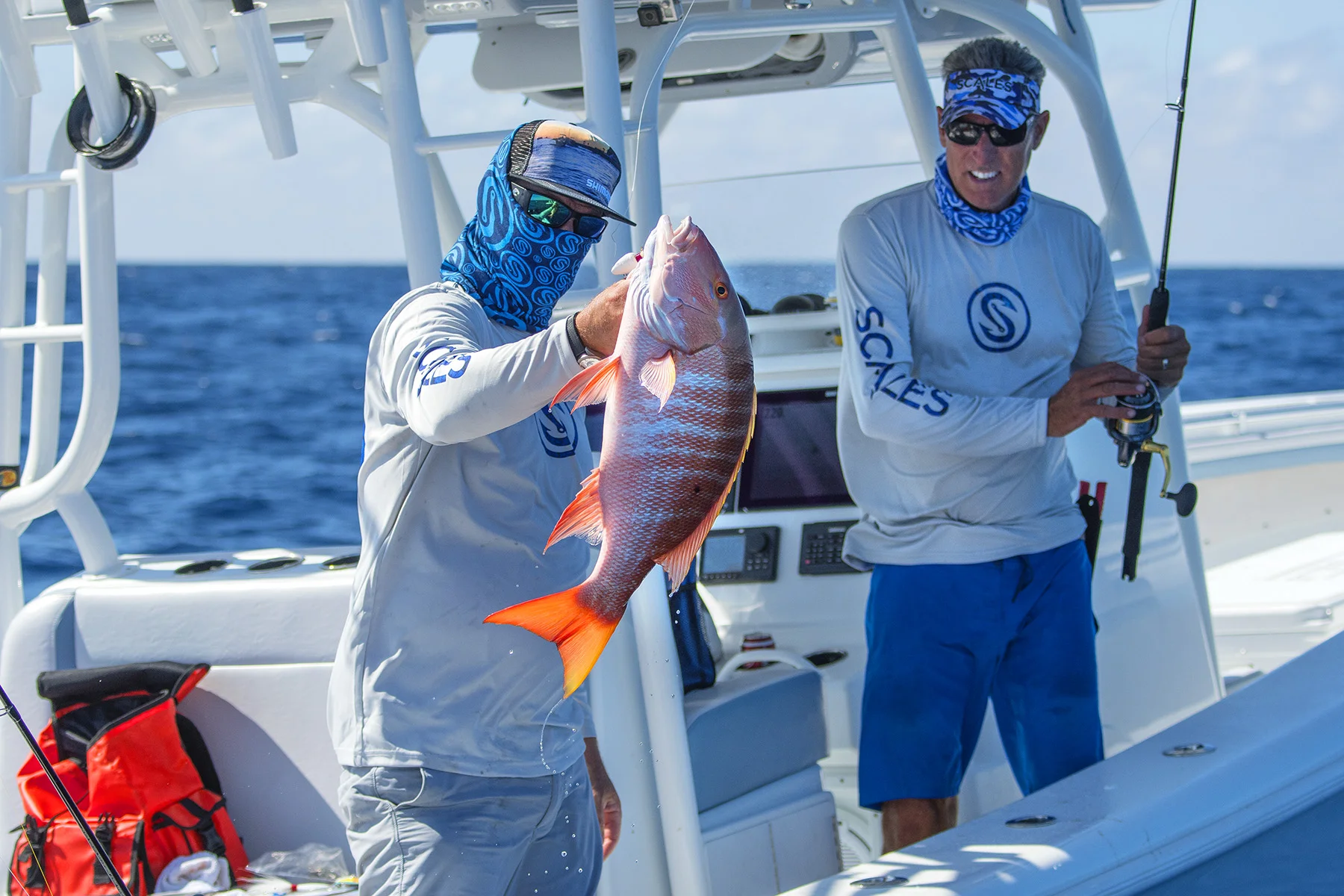 After a few tries, Scott gets a tug from his fishing pole, hoping it’s a grouper. While trying to reel in his fish, the line gets stuck in the rocks making it difficult for Scott to navigate out of. About an hour later, Scott is able to bring the fish in, and instead of the fish being a grouper, it is a mutton snapper. Scott and Steve leave their fishing trip content with catching a snapper each at the end of the day.